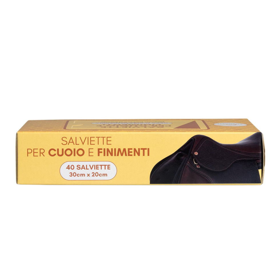 Le salviette impregnate di apposito sapone per cuoio sono comode e pratiche per essere portate sempre con sé in ogni occasione. Ottime sia per la cura e la pulizia dei finimenti, sia di tutti i prodotti in cuoio.