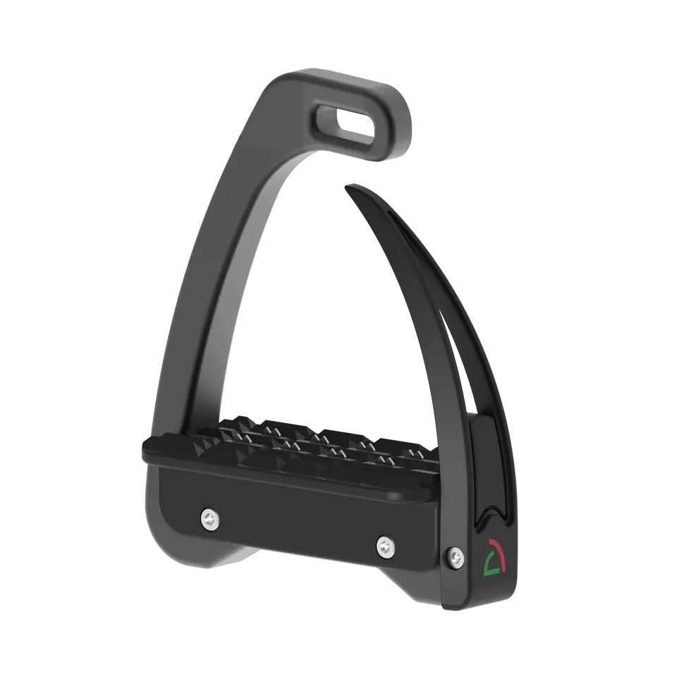 Un minore spazio fra pedana e arco di sicurezza, pensato per accogliere una calzata più piccola, e i soli 400 gr. di peso donati dalla struttura in lega leggera di alluminio ANTICORODAL, sono le caratteristiche della staffa S-Mini, che assicura comunque comfort, robustezza e sicurezza firmate Safe Riding.